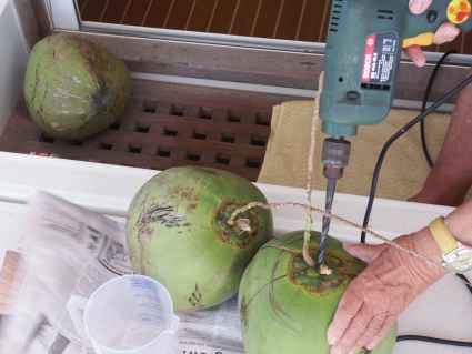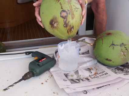 für den schmackhaften Saft einer Trinkkokosnuss (das sind die grünen, die noch