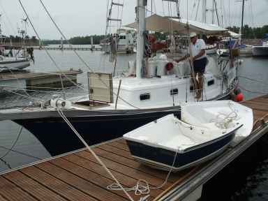 Dhingy läßt sich mit einem Aussenborder fahren oder auch segeln. Vor allem