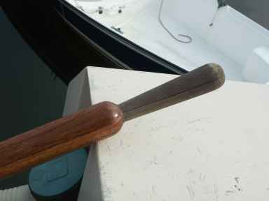 hartes Tropenholz für die Ruder gewählt hat. Vor allem aber hat er die Griffe