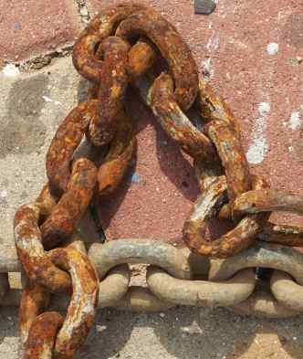 besonders, dass seine Ankerkette starke Verschleißerscheinungen zeigte: Rost,