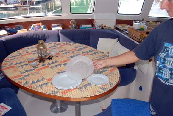 Abwehrmaßnahme, um auch bei Seegang, sein Essen weiter zu genießen und es