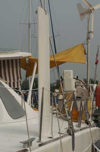 entfernen, ist er mittels Sorgleine an die Reling gesichert. Da wartet er dann,