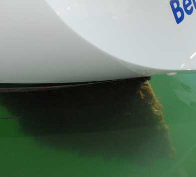 Kaum Bewuchs, nur wenig Schleim am Unterwasserschiff, der während eines kurzen