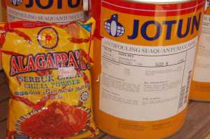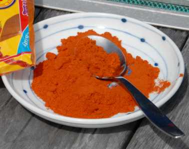 (ohne TBT!) Chili-Puder (nichts anderes als gemahlene Chili-Schoten) gemischt,