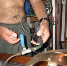 Problem für Bill: Mittels Schlauch, Sperrventil und Handpumpe, wie wir sie von