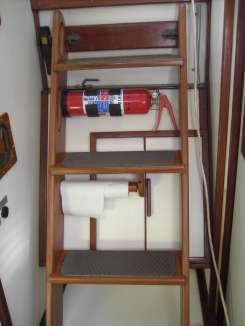der Feuerlöscher. Nebenbei: Man mache mal auf seiner Yacht die Probe und