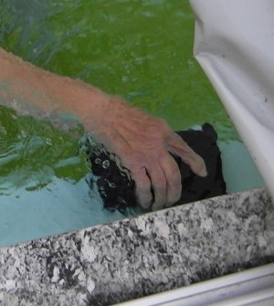 sich der Bewuchs offensichtlich besonders wohlfühlt, abschrubben. Mit Bürste