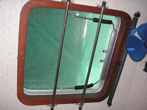 Die Stangen sind je nach Bedarf schnell ab-und wieder angeschraubt. Bei uns wurden sie bis jetzt nur für Servicefälle, wo ich den Durchlaß des gesamten Luks brauchte, abgenommen. Die Bordfrau sieht in den Stangen auch eine willkommene Vorrichtung um diverse Teile auf Bügeln dort aufzuhängen, zum Trocknen, zum Lüften oder was auch immer.
