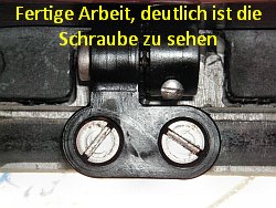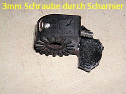 Das Scharnier provisorisch mit der 3mm Schraube festschrauben um zu sehen, ob alles paßt.