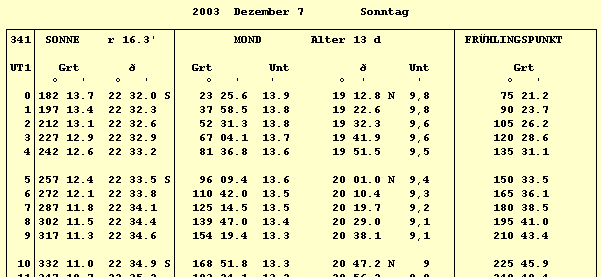 Nautische Jahrbuch für 2003 - siehe unten - ist noch gar nicht erhältlich),