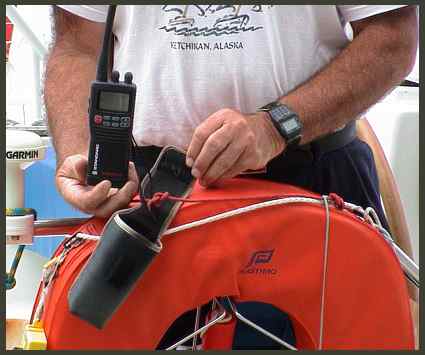bestechend macht: Er benutzt ein einfaches, aber wasserdichtes UKW-Handy, sodass