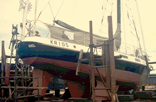 b) Krios in Kunststoff; bei den inzwischen stark verbesserten GFK-Qualitäten würden wir jedoch kein Stahlboot mehr kaufen, hauptsächlich der immerwährenden Rostbekämpfung wegen. Damals aber war es für uns die sicherste Entscheidung. Obwohl inzwischen zu den ganz Kleinen zu zählen, reichten uns 38ft vollkommen aus.